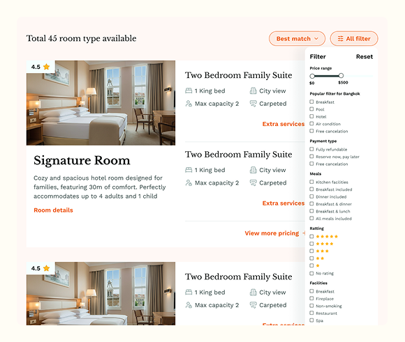 Users can refine results instantly using powerful filters. Every adjustment: price, location, availability; updates in real time.