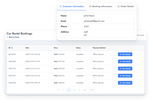 Tourfic integrates with WooCommerce, enabling seamless payments through gateways like PayPal, Stripe, and others. You can manage bookings, confirm or cancel rentals, and track all transactions directly from your WordPress dashboard.