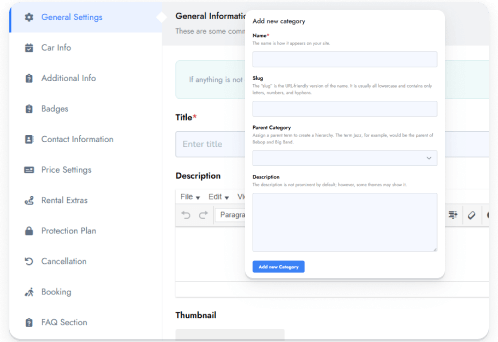 Tourfic allows you to create and manage car rental listings with details such as vehicle type, model, seating capacity, transmission, fuel type, and rental rules. Each car can include photos, pricing, and availability, making it easy for customers to book the right vehicle.