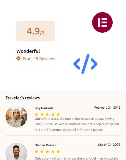 Display a customizable review slider with name, date, review text, and average rating. Works with Elementor or shortcode, and can be enabled or disabled anytime