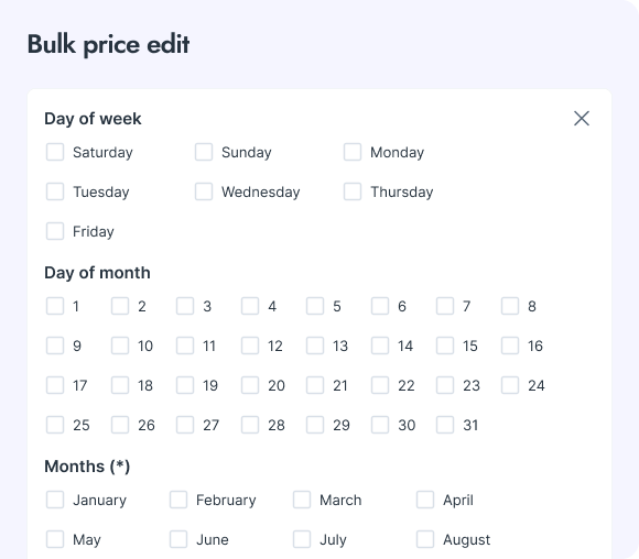 Define availability windows for each package or pricing rule. For example: special price for Summer, limited spots for Holiday period. Use our bulk‑edit tools to update pricing or availability across multiple tours in one go – no repetitive clicks.