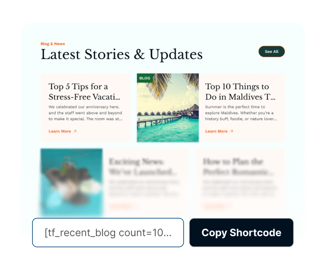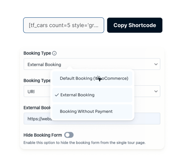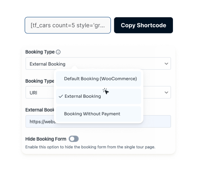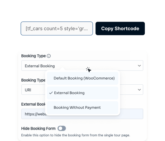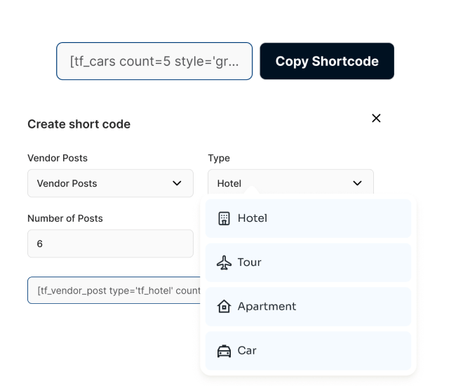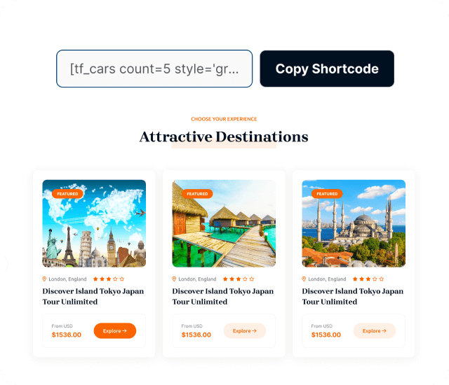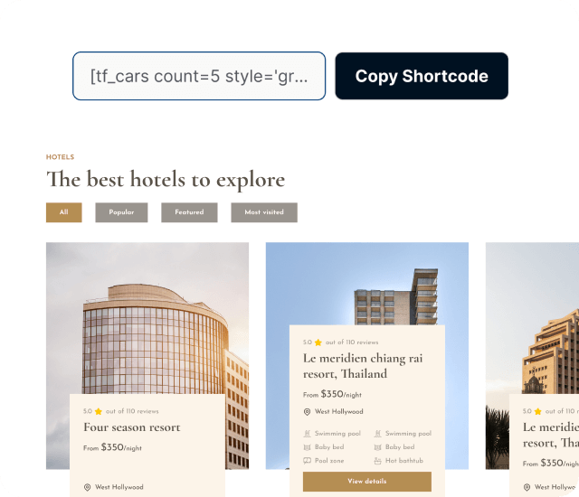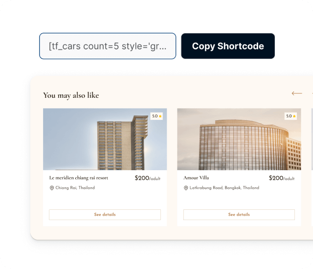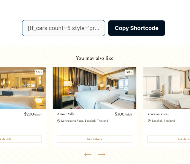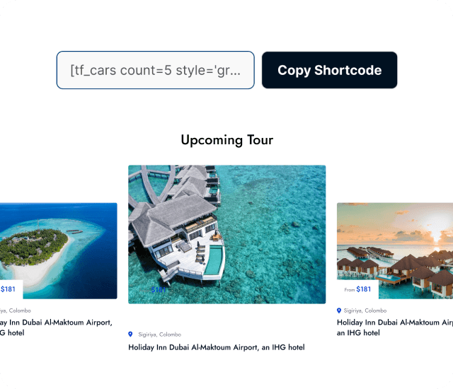 Tourfic's Shortcode Generator empowers you to showcase hotels, tours, apartments,